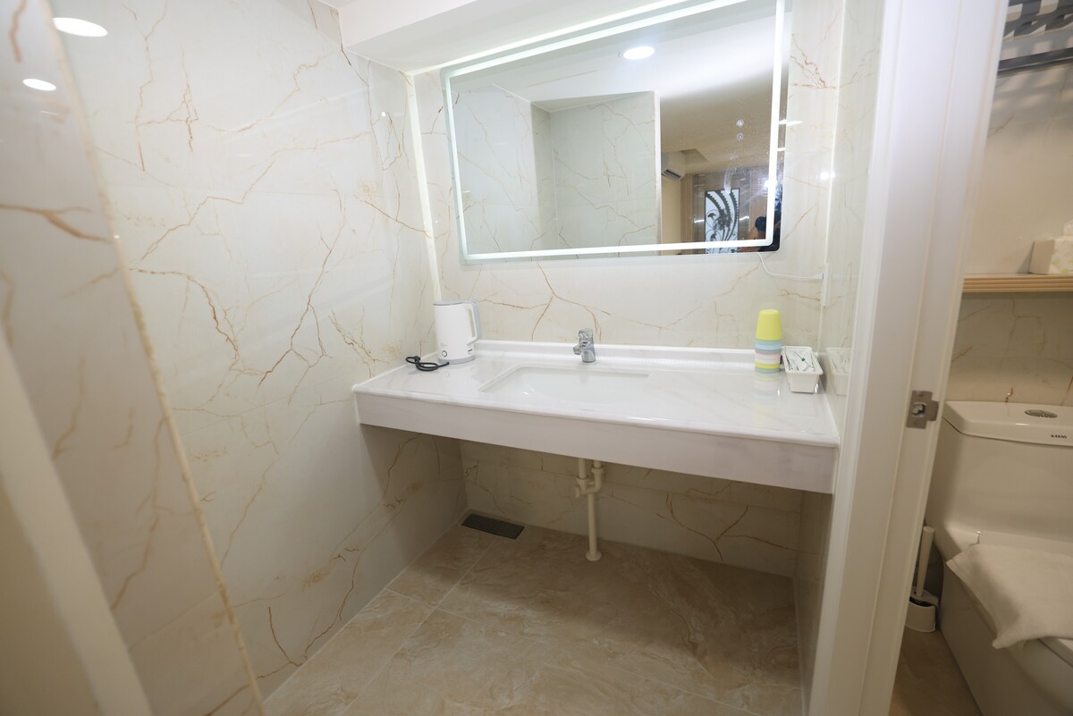 O estilo deste apartamento é muito consistente: a combinação cinza e preto e branco dos tons frios, as linhas limpas, a decoração minimalista, mas texturizada, com um pouco de estilo europeu de arte e uma cena cinematográfica.Simbolizando a moldura na parede e a vista da cidade, cada uma delas é uma cena da vida. Um quarto: cama de casal (2 pessoas) Outro quarto: individual extra grande (1 pessoa) Colchão de chão para a 4ª pessoa: reserve apenas se não se importar (1 pessoa) Sofá, bar, cadeiras Equipamento: 2 desumidificadores, geladeira de 2 camadas, 3 condicionadores de ar, 1 ventilador, máquina de café com filtro, pó de café, papel de filtro, panelas e frigideiras, colher de sopa, panela, pá, faca, garfo, pauzinhos, faca de cozinha, tábua de corte, tigela de sopa grande, capa de cama, capa de colcha, almofada, cobertores extras 200 * 230 colcha grande Xampu coreano, condicionador de seda, gel de banho, sabonete, removedor de maquiagem, algodão de maquiagem, loção, limpador facial, pasta de dentes, toalha, toalha de banho, detergente para roupas Por favor, traga sua própria escova de dentes (Não são fornecidas escovas de dentes e lâminas de barbear pessoais)