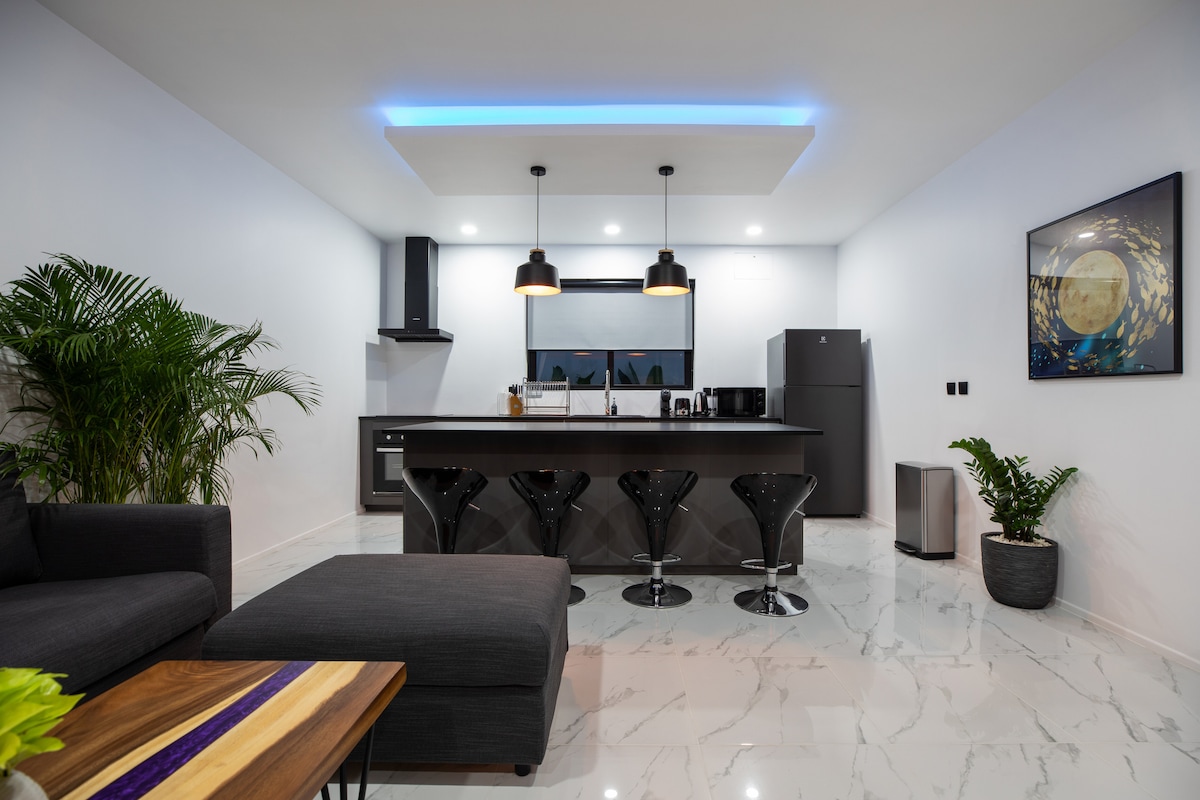 Luxo tropical moderno de 2 quartos a poucos passos da praia