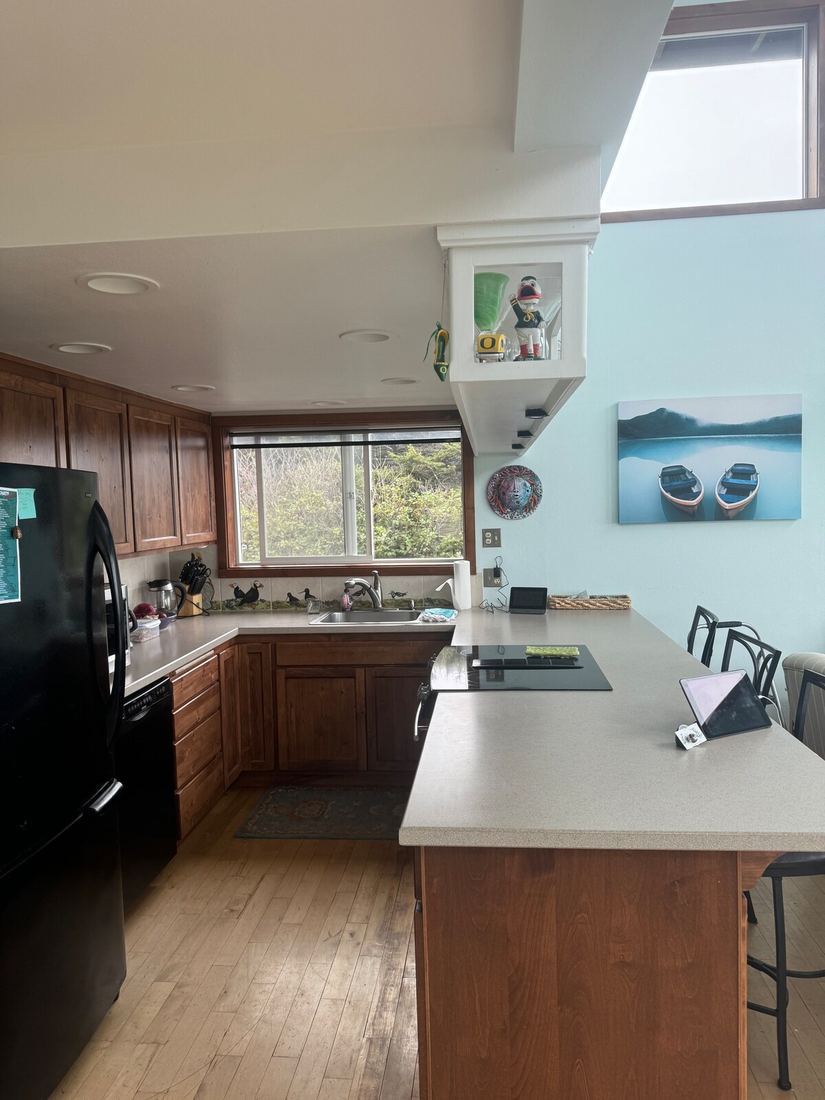 Se estiver procurando uma casa confortável com vista deslumbrante para o mar a uma curta distância a pé dos restaurantes e lojas de Yachats, nossa casa é para você! Assista às ondas, ao pôr do sol, aos pássaros voando e, ocasionalmente, a baleias e leões-marinhos da nossa casa confortável. Procure ágatas na praia de areia de fundição e explore as piscinas de maré em frente à casa, caminhe pela trilha 804 nas proximidades até uma praia de areia de 13 km ou vá até o Cabo Perpetual nas proximidades para uma caminhada.