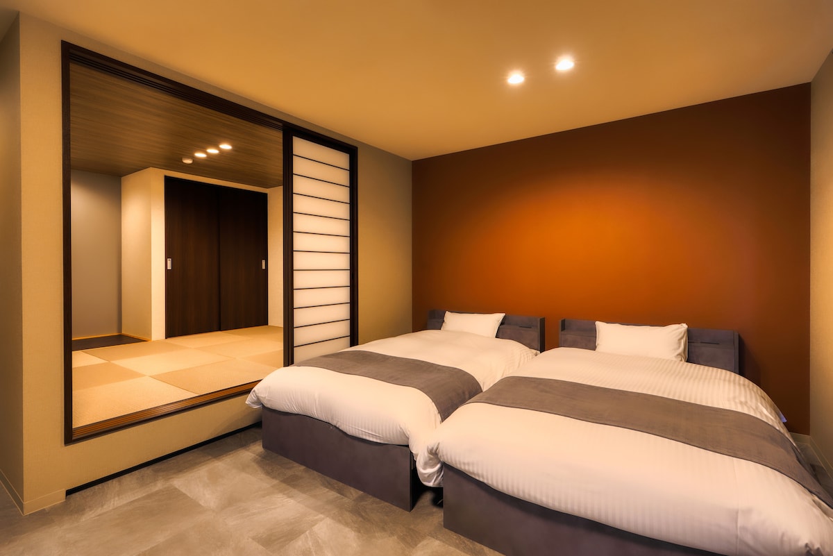 2 queen beds +2 Japanese futons/Natural Hot Spring