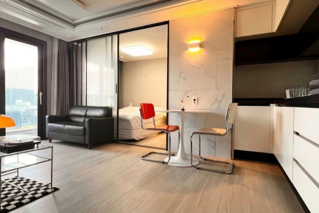 Fique na Jeju Central Park Residence e vivencie a autêntica vida de estúdio em estilo coreano! Estamos localizados perto do aeroporto e do bairro comercial da Rua Nuwemaru — a base perfeita para explorar a cidade de Jeju :) Assim como uma casa, o quarto está equipado com todos os móveis e instalações necessários, tornando-o conveniente para estadias de longa duração e viagens curtas!