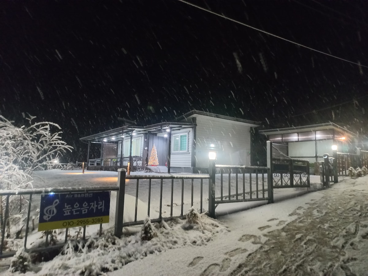 A 30 minutos de Cheongju, Huyang-rim, Vale, Arboreto, é uma bela pensão cheia de sol. É altamente recomendado para quem deseja um descanso confortável no abraço da natureza. Este é um anexo separado ao lado da casa principal, e tem piscina, lareira, churrasqueira, karaokê, Netflix de 100 polegadas, jardim e estacionamento. Há um gerente na casa principal, então você pode obter ajuda sempre que precisar. É um lugar muito bom em termos de geografia de vento e água, pois está localizado em direção ao sul, cheio de sol durante todo o dia. Com 660m² de espaço, balanço e caixa de areia, é um ótimo lugar para as crianças brincarem, e você pode dormir em um chalé sob as estrelas à noite. Os vegetais da horta são fornecidos gratuitamente e você também pode experimentar a sala de barro. Há atrações turísticas como vales e florestas de repouso nas proximidades. O churrasco não é permitido dentro de casa, mas há uma área de churrasco ao ar livre onde você pode se aquecer. Além disso, o karaokê instalado na área de churrasco também está disponível. Venha descansar no Haenal Stay, onde a primavera, verão, outono e inverno são lindos ^ ^
