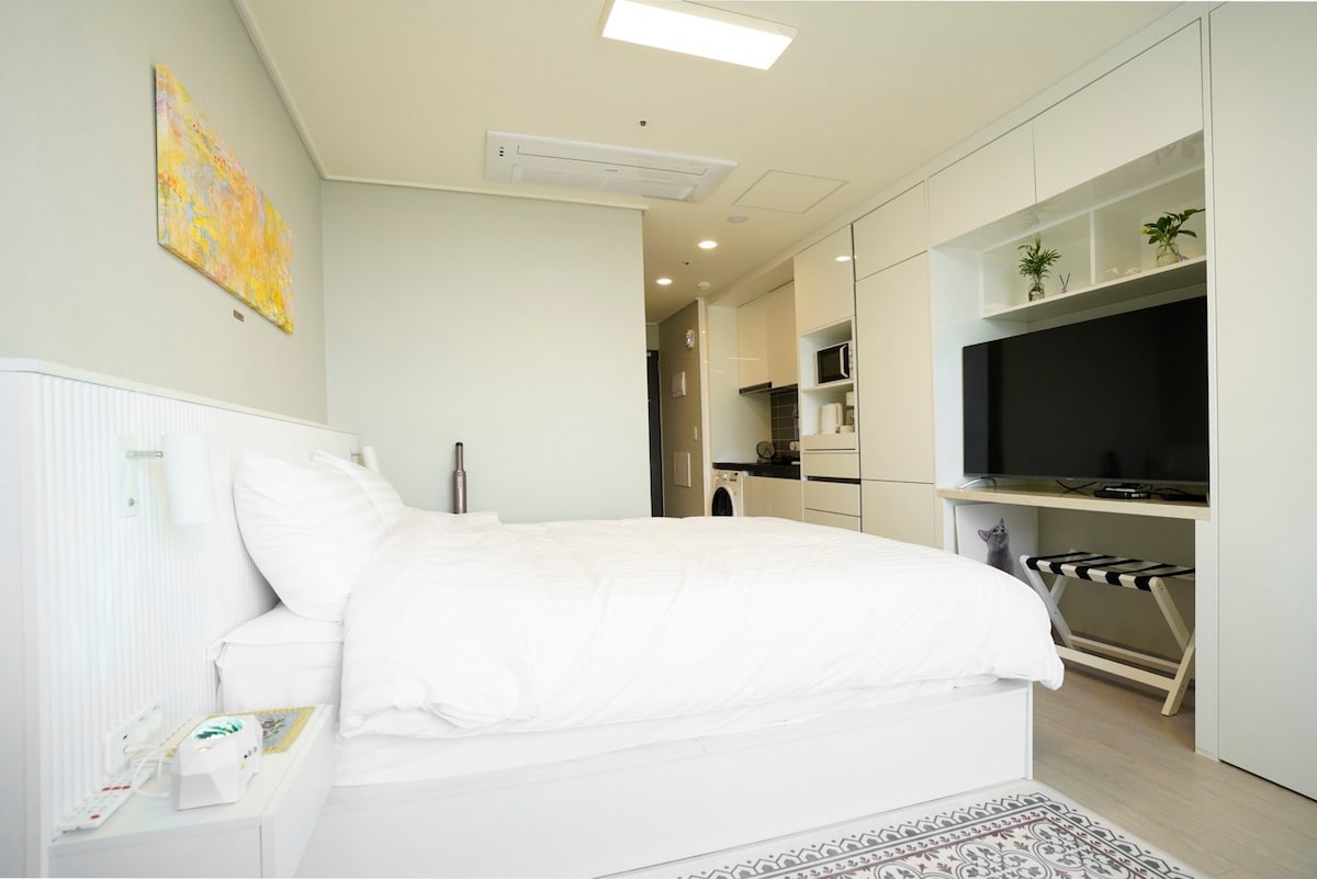 Novo *Momo* 《Cama king size espaçosa》 5 minutos da Estação do Parque do Festival da Luz de Songdo/Netflix/Vista para o mar/Viagem de negócios/Estadias longas