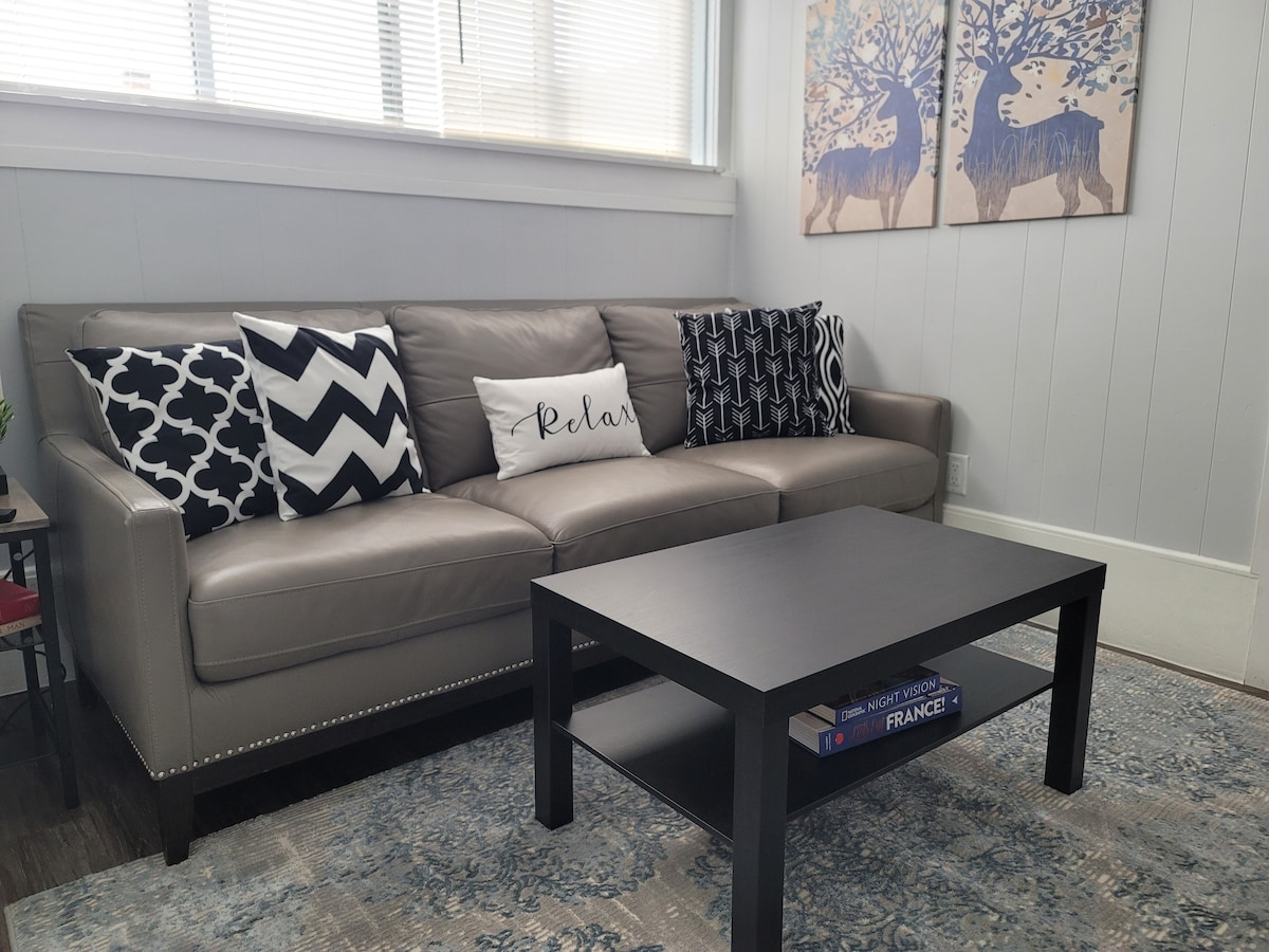 Este espaço bonito e iluminado possui tetos de 12 pés e tijolos expostos por toda parte. Aproveite a cozinha bem equipada para cozinhar uma refeição rápida, ou saia pela porta da frente e desfrute de uma infinidade de restaurantes locais ao seu alcance! A Smart TV tem conta de vídeo premium gratuita para o seu entretenimento! O quarto possui uma confortável cama king size com um pequeno recanto de escritório com uma mesa! Desfrute de vistas do centro da cidade de Depot Town e do trem da janela da sua sala de estar!