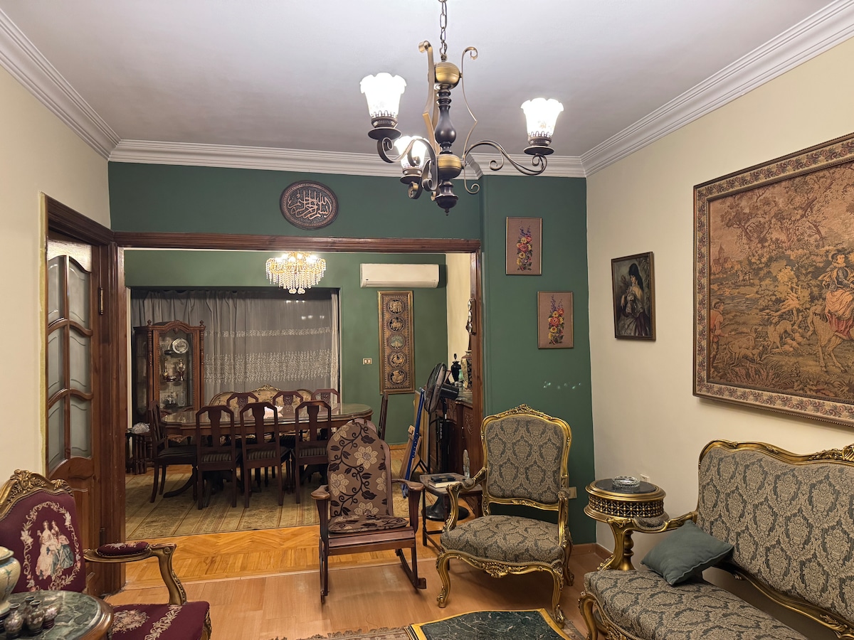 - Bem-vindo ao nosso apartamento privado em Roxy, Heliopolis, um dos melhores bairros do Cairo. - Todas as instalações de transporte ao redor. - A 10 minutos do aeroporto do Cairo, a 5 minutos da estação de metrô, a 3 minutos a pé do Starbucks e do hipermercado Royal House. - Todos os serviços que você precisa estão por perto. - Cozinha totalmente equipada com varanda e banheiro. 2 ar condicionados, 2 ventiladores, Wi-Fi confiável, telefone fixo e varanda aconchegante. - 4º andar com elevador e contém 2 quartos privativos e 2 camas e um sofá aconchegante
