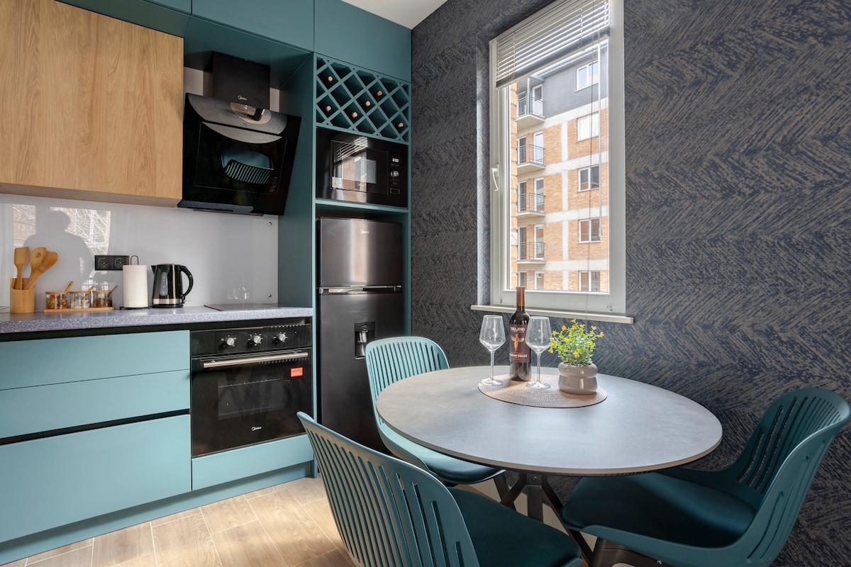 Kitnet aconchegante em Tbilisi, perto de estação de metrô, ponto de ônibus, aeroporto, centro da cidade e lojas locais. Fica na área verde. O apartamento em si está equipado com tudo o que você pode precisar (papel higiênico, lenços de papel, detergente, sabão para louça, tabletes para máquina de lavar louça, mas, se acabarem, você precisa comprar novamente, se necessário). Quarto separado com uma cama de casal confortável. O apartamento é perfeito para casais, famílias pequenas ou trabalhadores remotos. No complexo, há mercado 24h, salão de beleza, café e espaço de coworking.