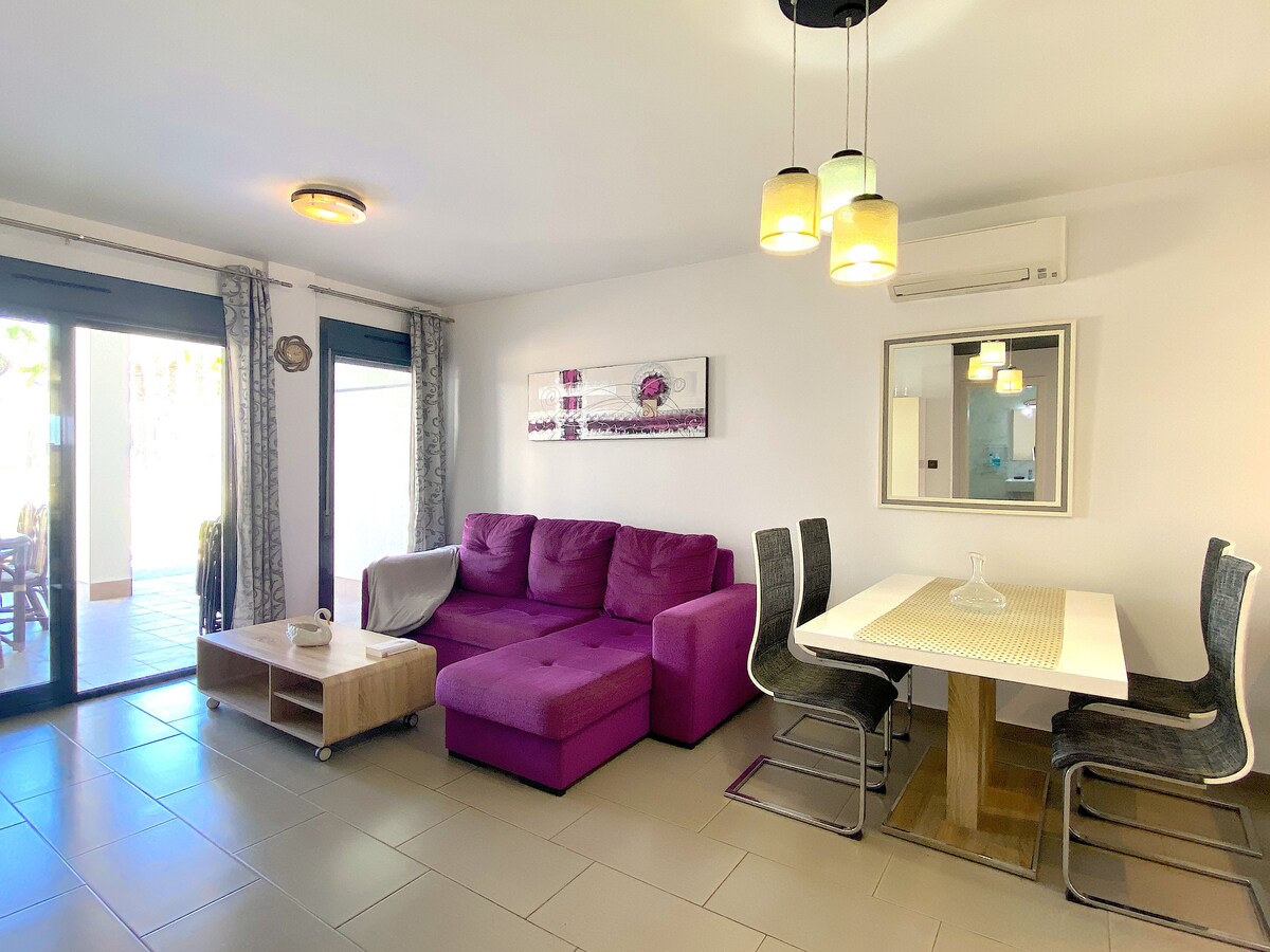 Apartamento de luxo, a 15 minutos a pé da famosa praia de areia La Zenia. 2 pátios, com vista para a piscina/área do jardim e com estacionamento conveniente na rua. Qualquer coisa que venha a precisar está a uma curta caminhada. Ar-condicionado central, máquina de lavar louça, máquina de lavar/secar roupa. Wi-Fi, TV.