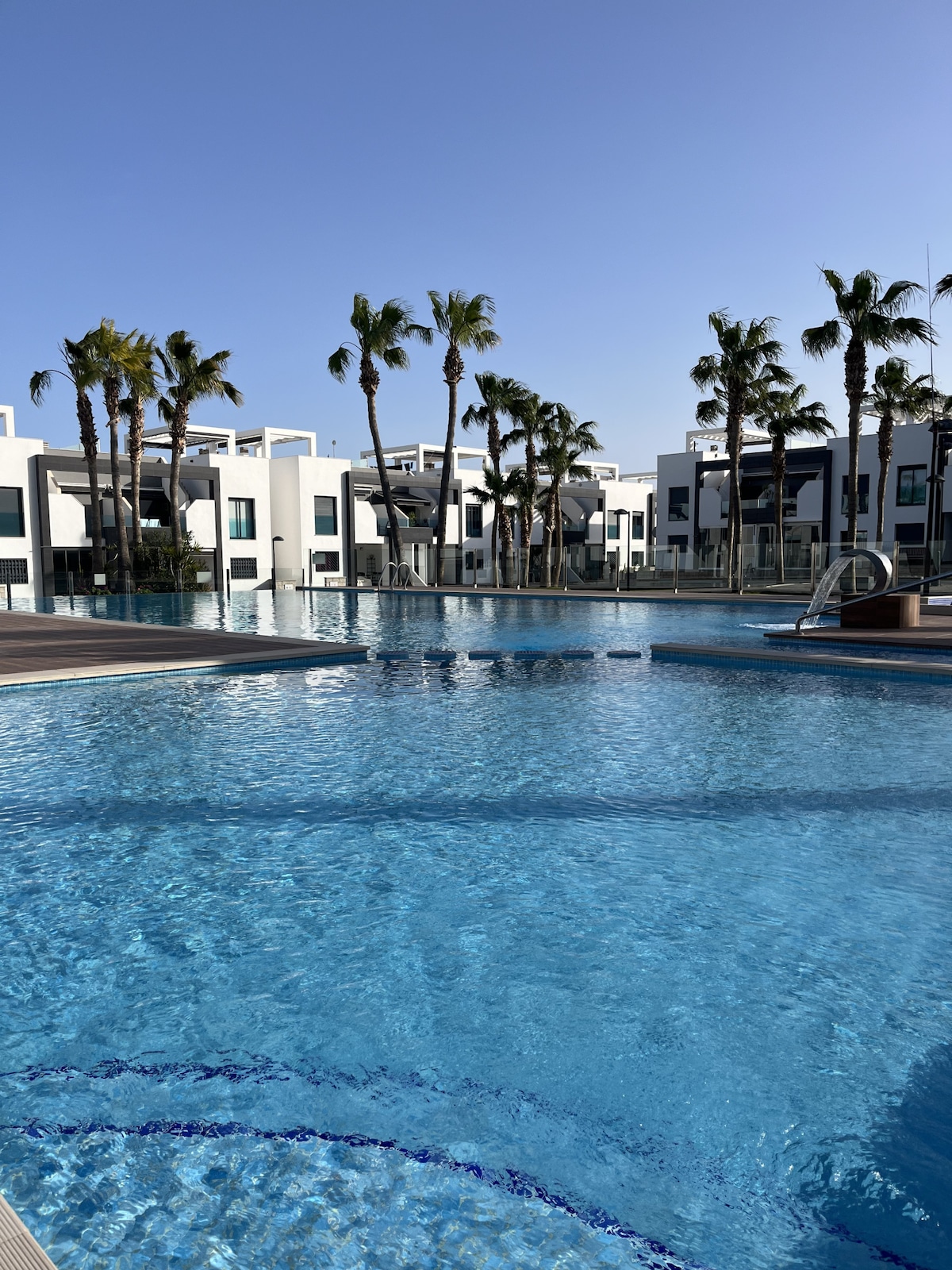 A modern, two-bedroom apartment with a spacious terrace in the heart of Playa Flamenca offers comfortable interiors, two bathrooms, a fully equipped kitchen, a washing machine, a hairdryer, a dishwasher, and air conditioning. Each bedroom and the living room feature a Smart TV. Complex amenities include pools - two of which are heated year-round — a jacuzzi, sauna, gym, playground, bar, and underground parking. Close to beaches, shops and restaurants. Perfect for an unforgettable stay!