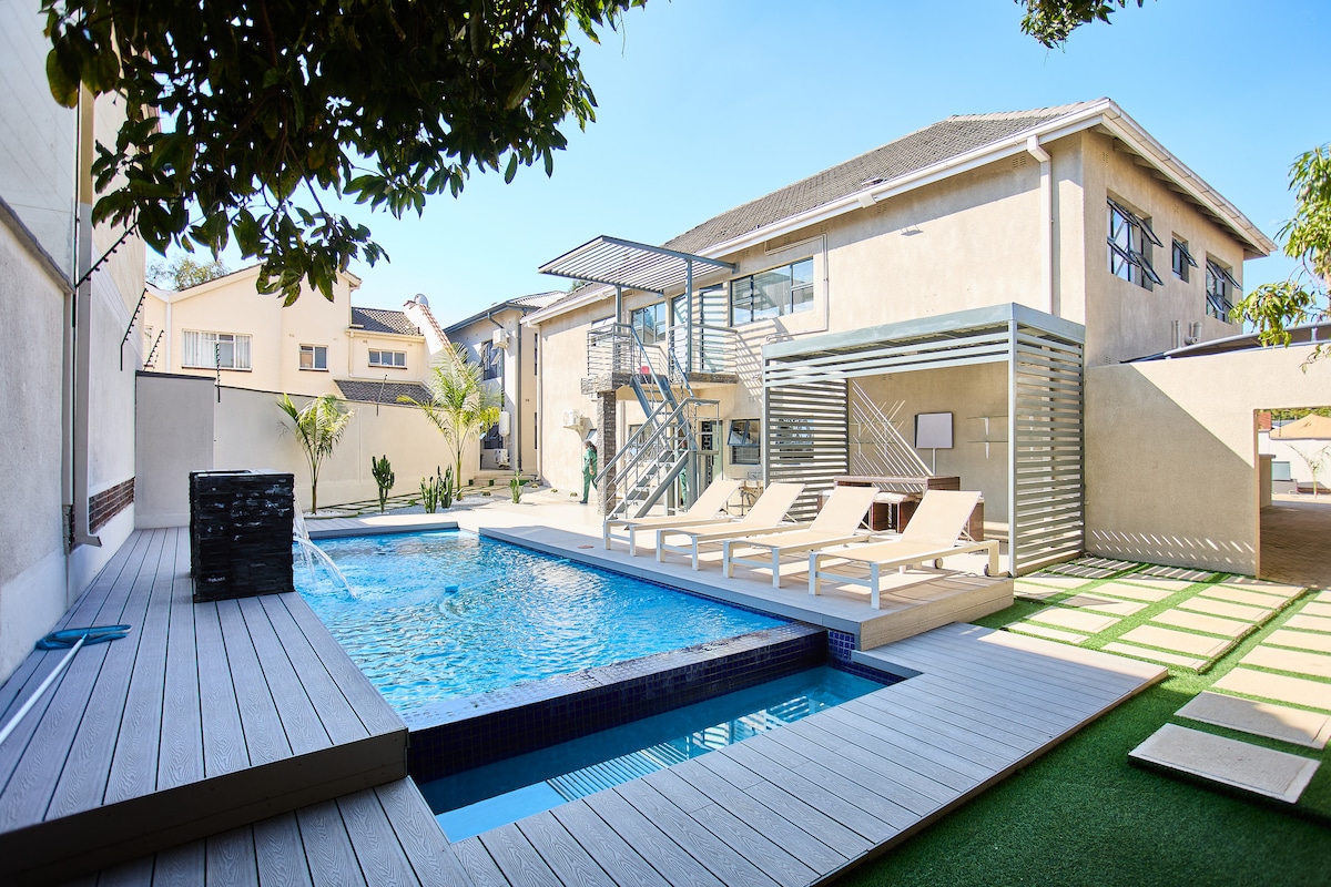 • Modern, Peaceful Stay Just Minutes From the CBD Enjoy a newly built lodge offering modern architecture, spacious rooms, and a calm garden setting. Relax by the pool, take peaceful walks across the secure property, and enjoy bright, cozy interiors designed for comfort. With patrolling security, easy parking, and a quiet atmosphere, you get a refreshing escape — all just 5 minutes from Harare’s CBD.
