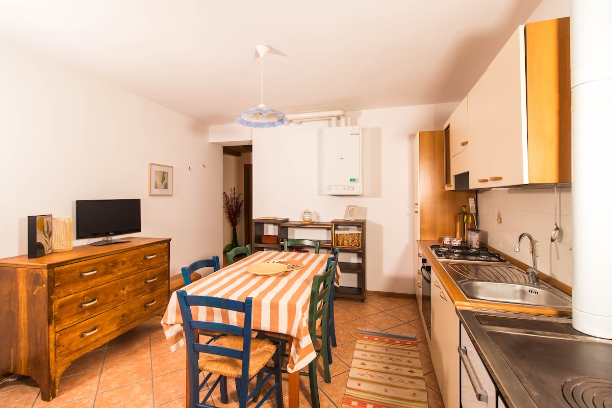 Apartamento estúdio recém-renovado, mobiliado com bom gosto e atenção para informações. O apartamento está localizado numa parte da nossa casa de família, no centro de uma aldeia histórica perto de oliveiras, lugares para escalador e arco. O Lago de Garda fica a apenas alguns km de distância. Também é conveniente como apoio para o lar de idosos Eremo, acessível a pé em 2 minutos.