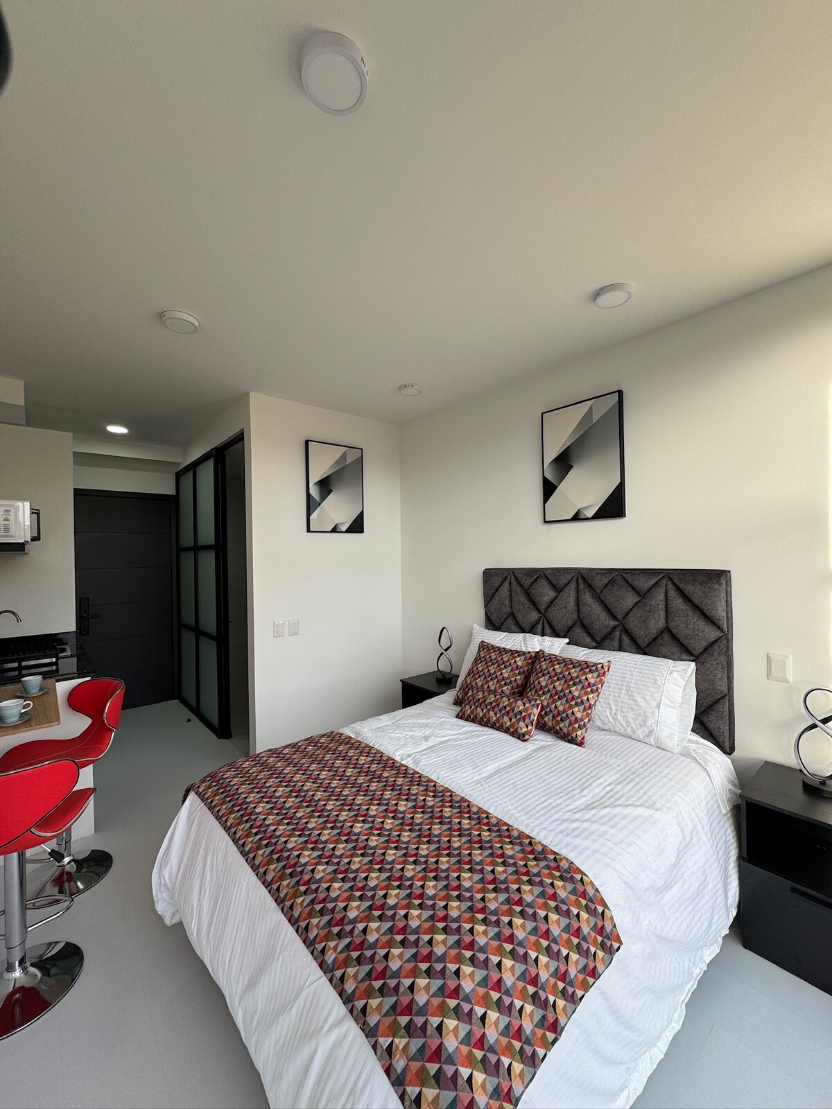 Immerse yourself in the warmth and brightness of our charming apartment, a space designed to provide you with an unforgettable stay. With a loft-style layout, this space offers everything you need for a comfortable and enjoyable stay. In addition to its coziness, the apartment is located just a few meters from prestigious hotels like the Hilton, JW Marriott, Four Seasons, right in the heart of Quinta Camacho and Zona G. Here, you’ll find a variety of restaurants, bars and cultural attractions.