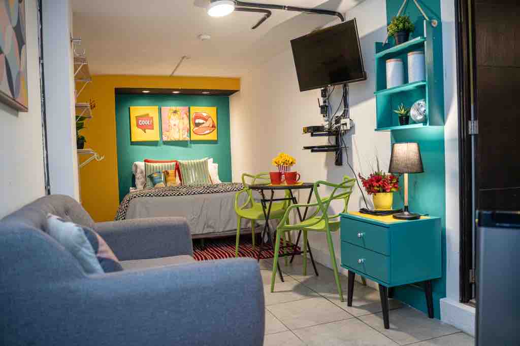 Loft con ubicación estratégica en el Edificio Centro Vivo, que es el más moderno del Centro Histórico y el 2do. más alto del corazón de la ciudad. Rodeado de bares, restaurantes, historia y edificios emblemáticos, media cuadra de la famosa 6ta avenida y a 200mts. del Parque Central, Palacio Nacional y Catedral Metropolitana. Equipado con diseño contemporáneo, cálido y acogedor. Tu estadía perfecta si buscas una experiencia de historia/cultura. Reserva ya y descubre la magia del Centro Histórico.