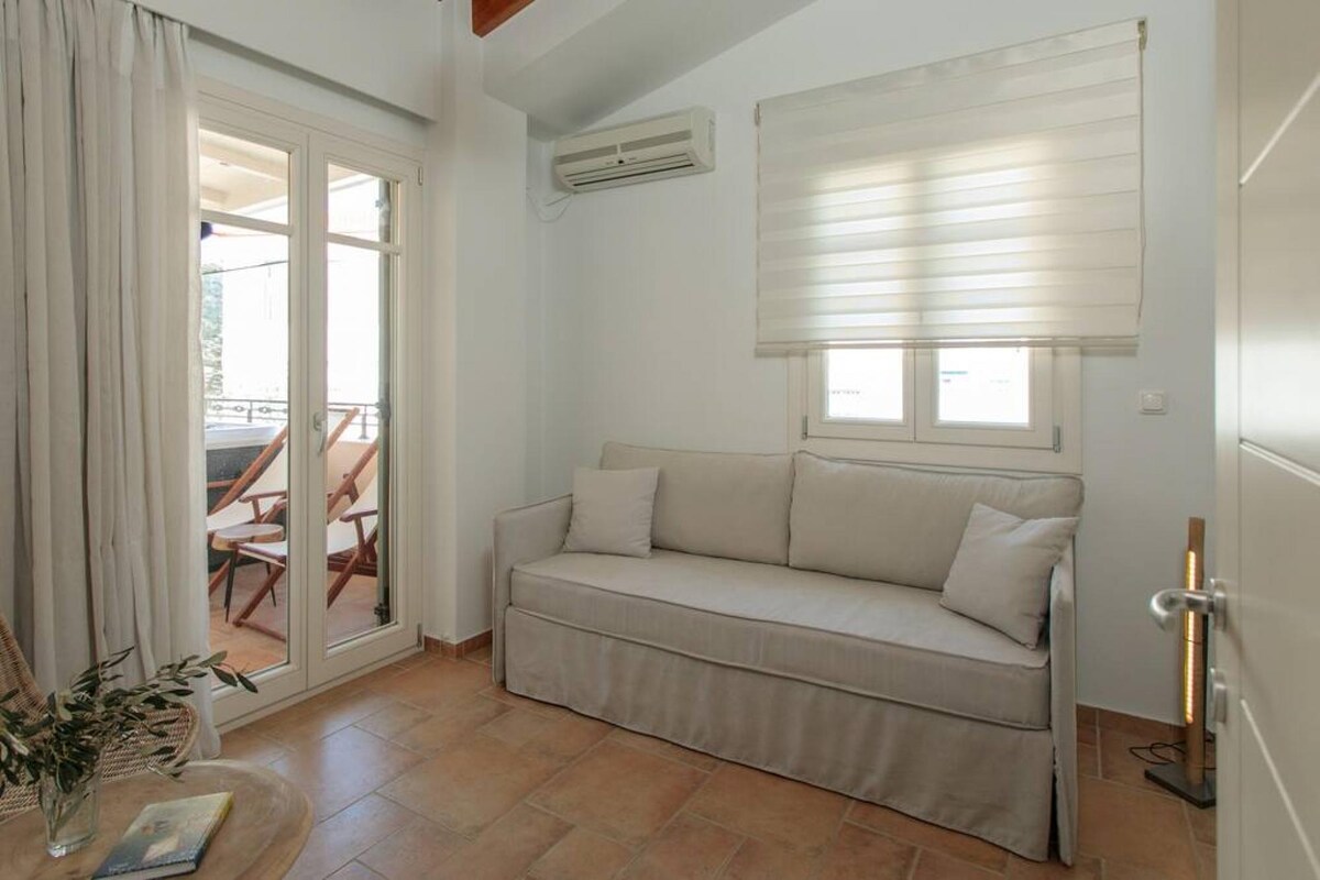 O apartamento está localizado no centro da cidade de Naxos e a poucos passos (200m) da praia de São Jorge, restaurantes, supermercados, padaria, etc. O porto de Naxos fica a 10 minutos de caminhada. Nosso apartamento está totalmente mobiliado e equipado com tudo o que você precisa para uma estadia confortável. Há uma varanda e também um quintal. O quarto tem uma cama de casal confortável e também há um sofá-cama na sala de estar.
