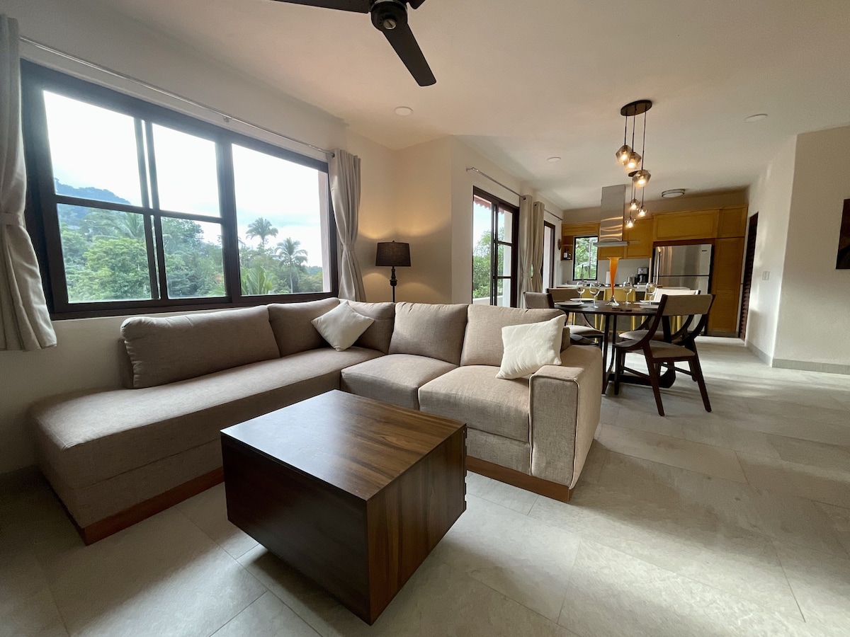 Localizado na estrada principal no coração de Mismaloya, a poucos passos de Barceló Puerto Vallarta, Playa Mismaloya e do Zoológico de Vallarta, nosso apartamento de luxo totalmente mobiliado com 2 camas e 2 banheiros espera por você! O condomínio é um edifício novinho em folha ao lado do conservatório de borboletas e de costas para o rio Mismaloya — perfeito para observar pássaros, relaxar e desfrutar de vistas exuberantes da selva, tudo perto de todas as conveniências da cidade e a menos de 10 minutos a pé da praia.